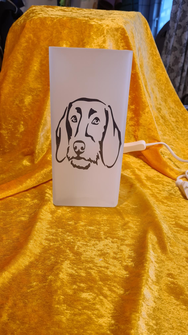 Tischlampe Rauhhaardackel grau