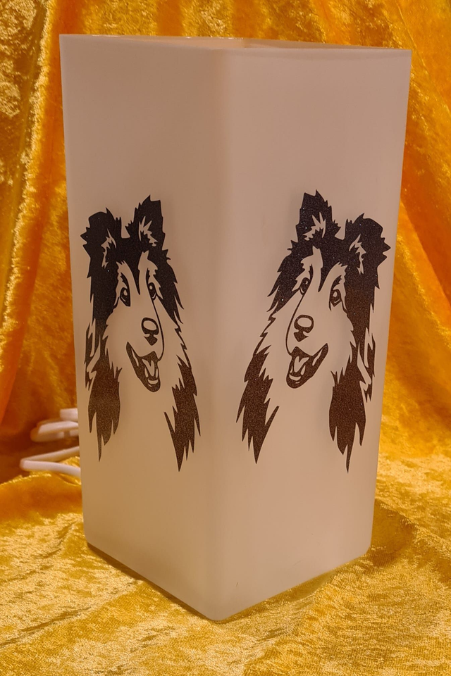 Alle vier Seiten wurden beklebt mit einem Sheltiekopf.